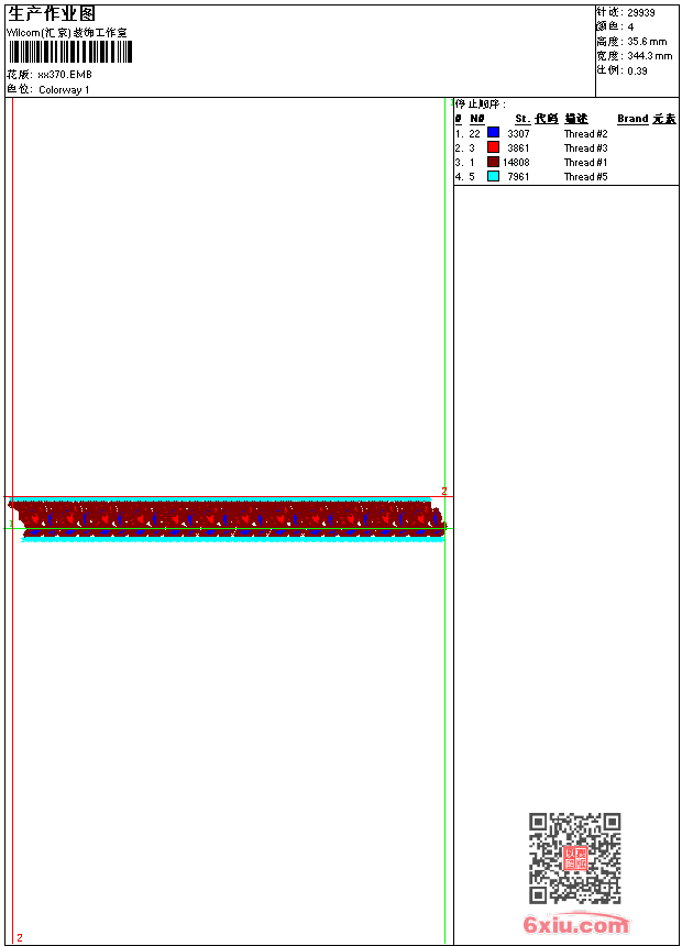 - emb花版参数: 大小:60.50 KB / 尺寸:344*36[毫米] / 针数:29939针 / 线色:4 / 格式:emb / 版本:9