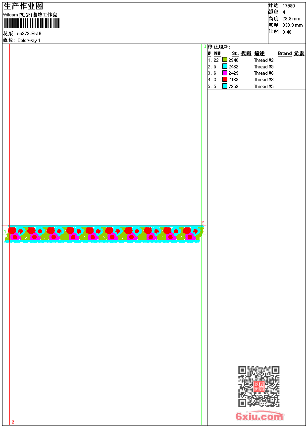 - emb花版参数: 大小:36.00 KB / 尺寸:339*30[毫米] / 针数:17980针 / 线色:4 / 格式:emb / 版本:9