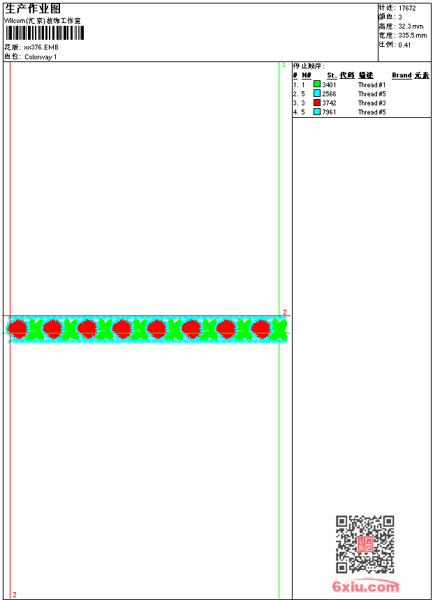 - emb花版参数: 大小:39.00 KB / 尺寸:335*32[毫米] / 针数:17672针 / 线色:3 / 格式:emb / 版本:9