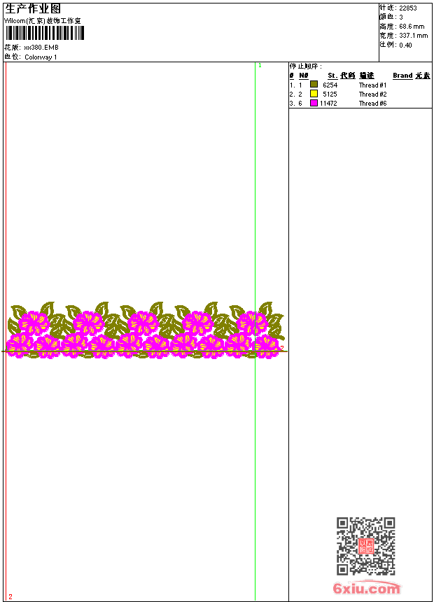 - emb花版参数: 大小:62.50 KB / 尺寸:337*69[毫米] / 针数:22853针 / 线色:3 / 格式:emb / 版本:9