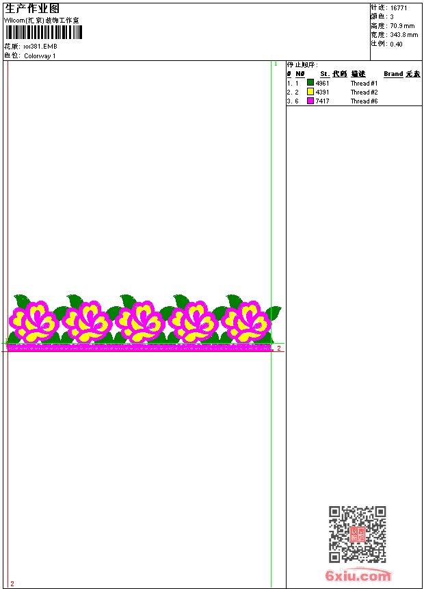 - emb花版参数: 大小:57.00 KB / 尺寸:344*71[毫米] / 针数:16771针 / 线色:3 / 格式:emb / 版本:9