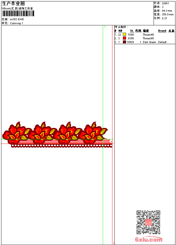 - emb花版参数: 大小:52.50 KB / 尺寸:360*84[毫米] / 针数:22661针 / 线色:3 / 格式:emb / 版本:9
