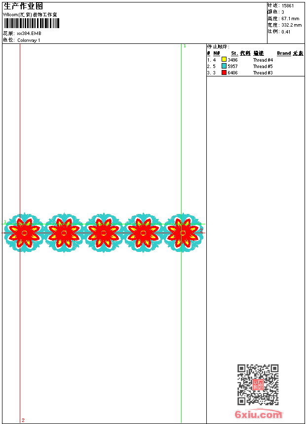 - emb花版参数: 大小:73.50 KB / 尺寸:332*67[毫米] / 针数:15861针 / 线色:3 / 格式:emb / 版本:9
