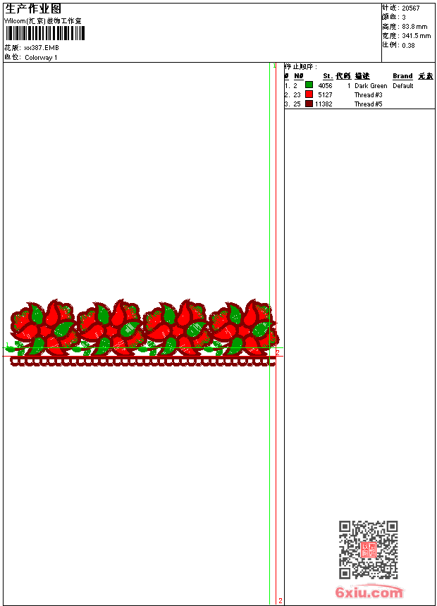 - emb花版参数: 大小:45.50 KB / 尺寸:341*84[毫米] / 针数:20567针 / 线色:3 / 格式:emb / 版本:9