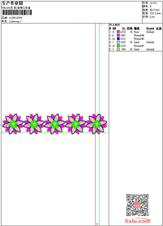 - emb花版参数: 大小:55.50 KB / 尺寸:333*67[毫米] / 针数:12112针 / 线色:5 / 格式:emb / 版本:9