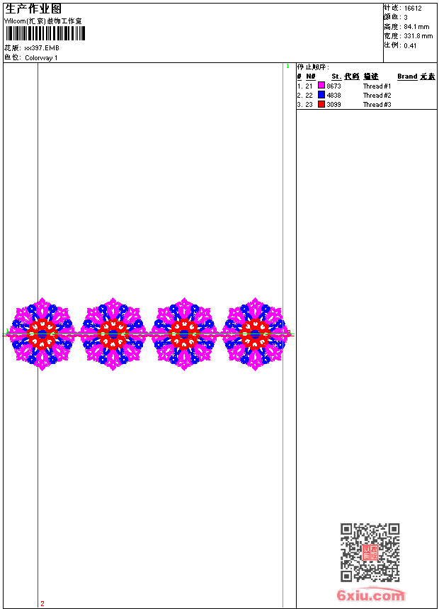 - emb花版参数: 大小:74.00 KB / 尺寸:332*84[毫米] / 针数:16612针 / 线色:3 / 格式:emb / 版本:9