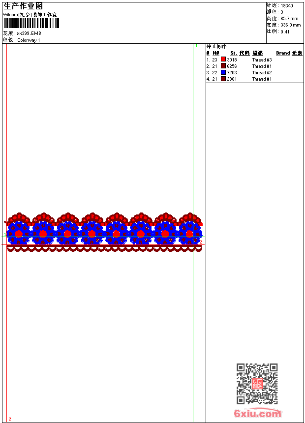 - emb花版参数: 大小:66.50 KB / 尺寸:336*66[毫米] / 针数:19340针 / 线色:3 / 格式:emb / 版本:9