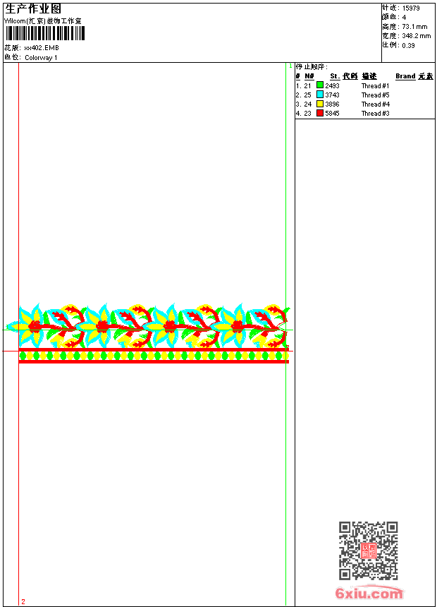- emb花版参数: 大小:82.50 KB / 尺寸:348*73[毫米] / 针数:15979针 / 线色:4 / 格式:emb / 版本:9