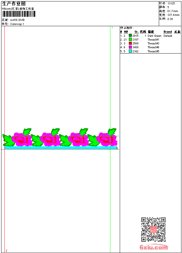 - emb花版参数: 大小:54.50 KB / 尺寸:337*62[毫米] / 针数:13125针 / 线色:5 / 格式:emb / 版本:9