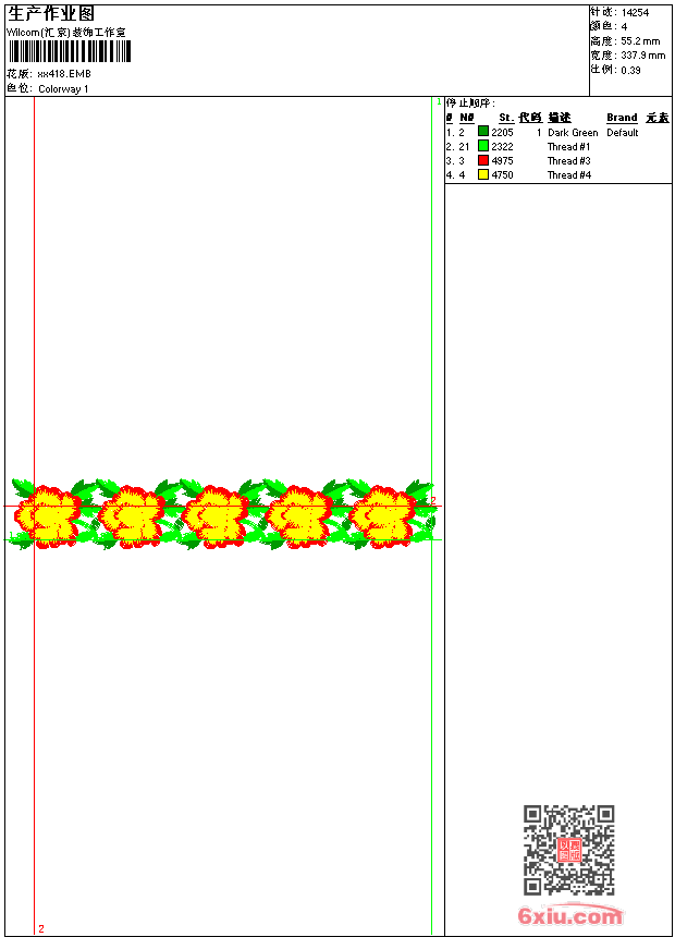 - emb花版参数: 大小:39.50 KB / 尺寸:338*55[毫米] / 针数:14254针 / 线色:4 / 格式:emb / 版本:9