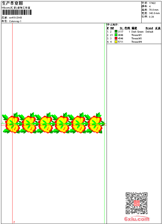 - emb花版参数: 大小:39.00 KB / 尺寸:343*71[毫米] / 针数:17422针 / 线色:4 / 格式:emb / 版本:9