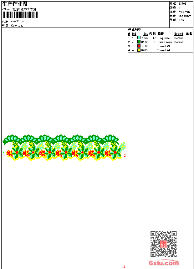 - emb花版参数: 大小:90.50 KB / 尺寸:355*75[毫米] / 针数:23709针 / 线色:4 / 格式:emb / 版本:9