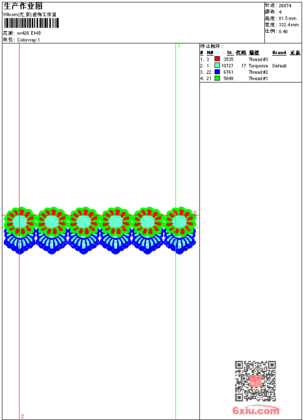 - emb花版参数: 大小:163.50 KB / 尺寸:332*81[毫米] / 针数:26874针 / 线色:4 / 格式:emb / 版本:9