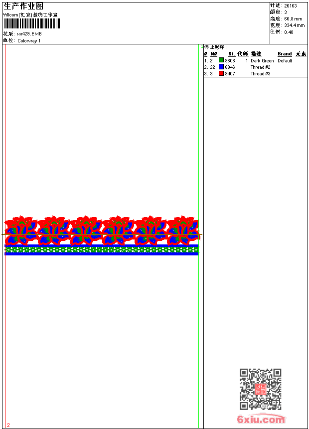 - emb花版参数: 大小:88.50 KB / 尺寸:334*67[毫米] / 针数:26163针 / 线色:3 / 格式:emb / 版本:9