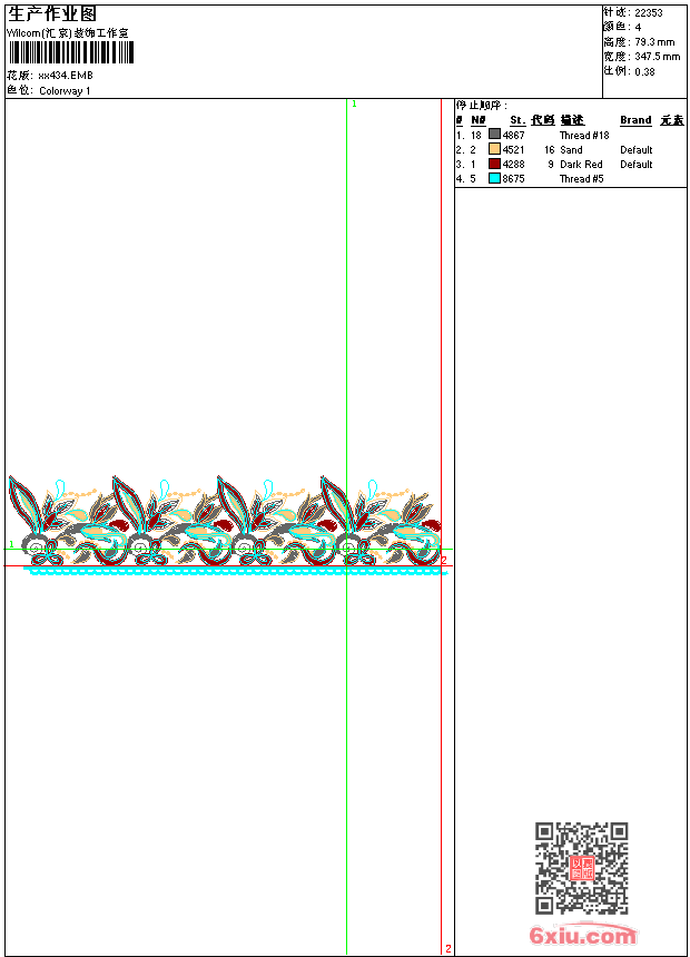 - emb花版参数: 大小:70.00 KB / 尺寸:347*79[毫米] / 针数:22353针 / 线色:4 / 格式:emb / 版本:9