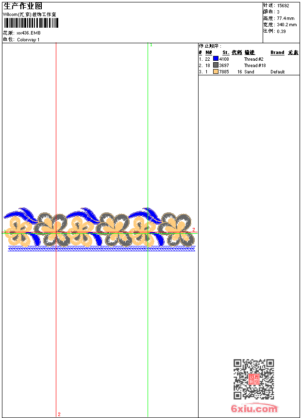 - emb花版参数: 大小:53.00 KB / 尺寸:340*77[毫米] / 针数:15692针 / 线色:3 / 格式:emb / 版本:9