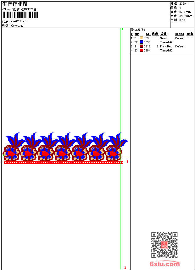 - emb花版参数: 大小:49.50 KB / 尺寸:348*88[毫米] / 针数:23594针 / 线色:4 / 格式:emb / 版本:9