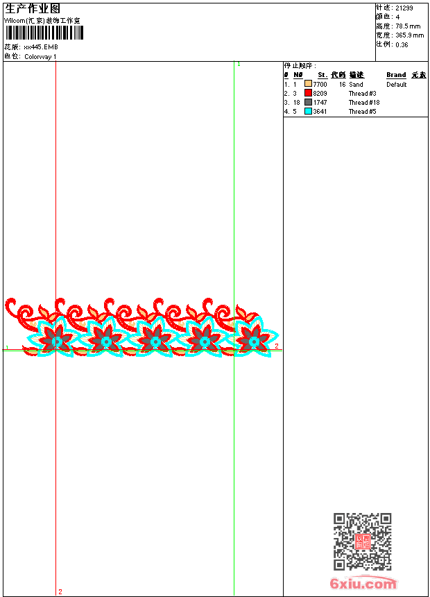- emb花版参数: 大小:66.50 KB / 尺寸:366*79[毫米] / 针数:21299针 / 线色:4 / 格式:emb / 版本:9