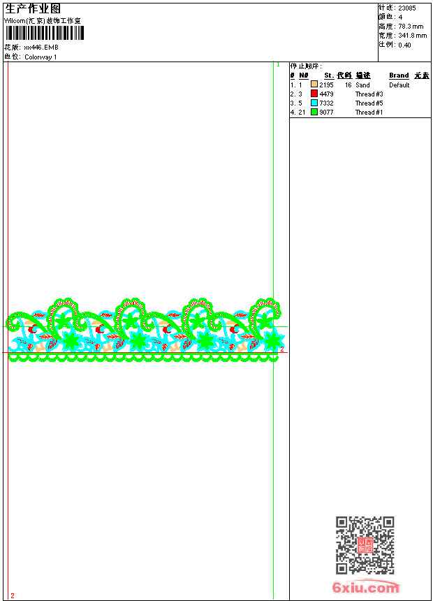 - emb花版参数: 大小:80.50 KB / 尺寸:342*78[毫米] / 针数:23085针 / 线色:4 / 格式:emb / 版本:9