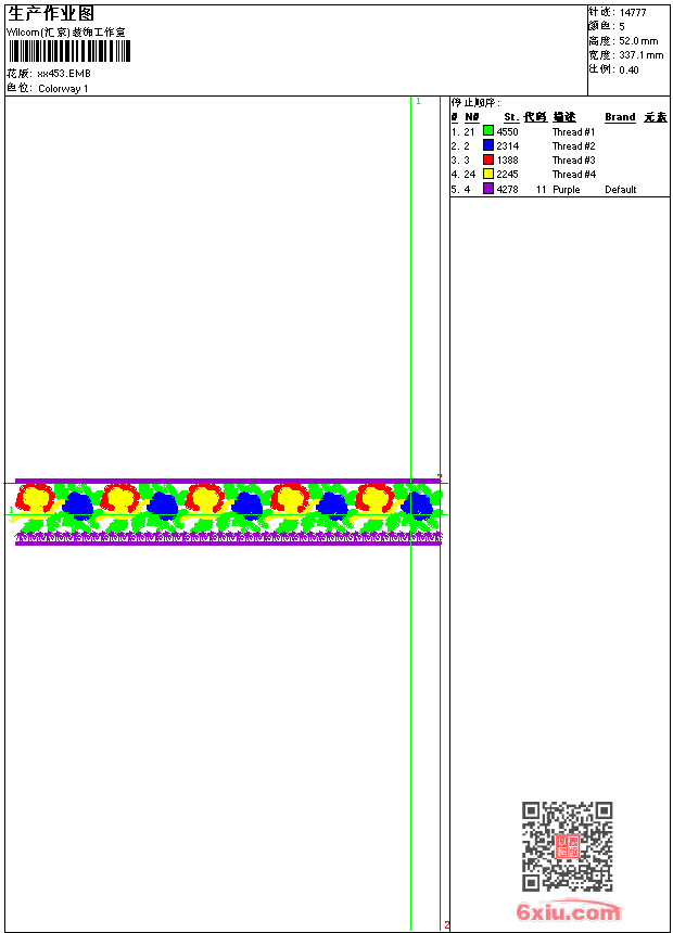 - emb花版参数: 大小:43.50 KB / 尺寸:337*52[毫米] / 针数:14777针 / 线色:5 / 格式:emb / 版本:9