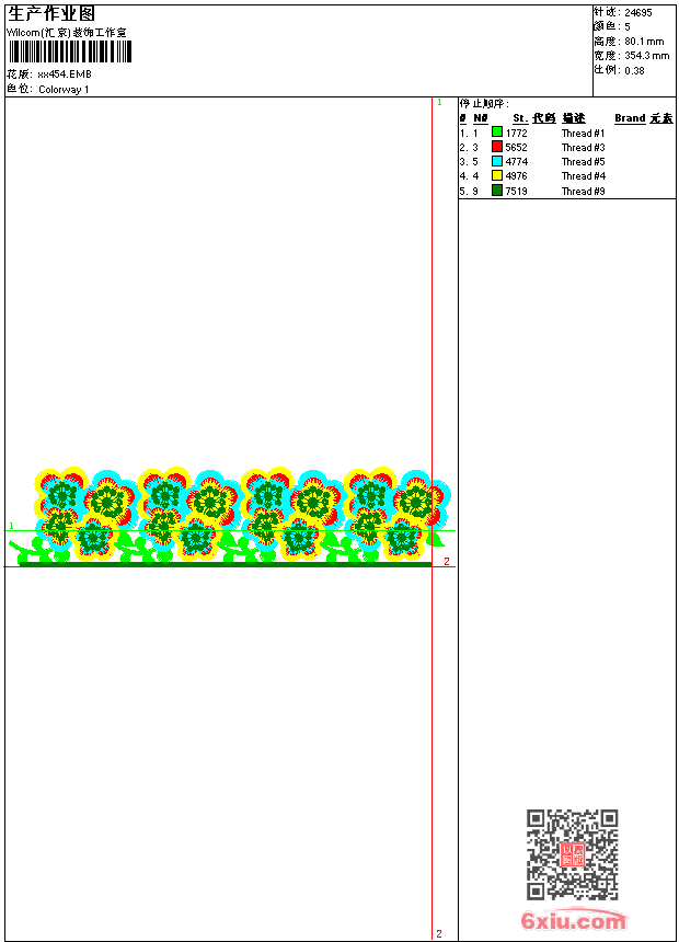 - emb花版参数: 大小:100.00 KB / 尺寸:354*80[毫米] / 针数:24695针 / 线色:5 / 格式:emb / 版本:9