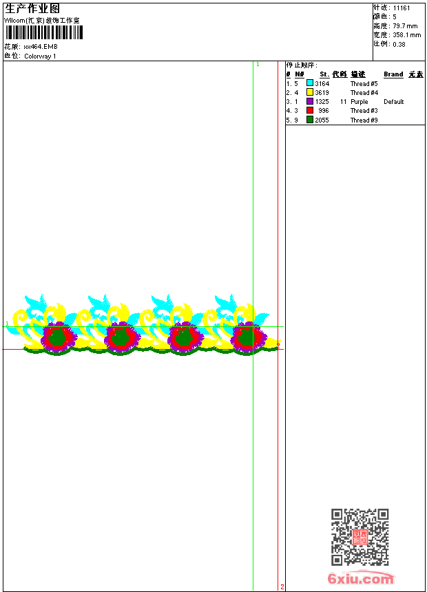 - emb花版参数: 大小:40.50 KB / 尺寸:358*80[毫米] / 针数:11161针 / 线色:5 / 格式:emb / 版本:9