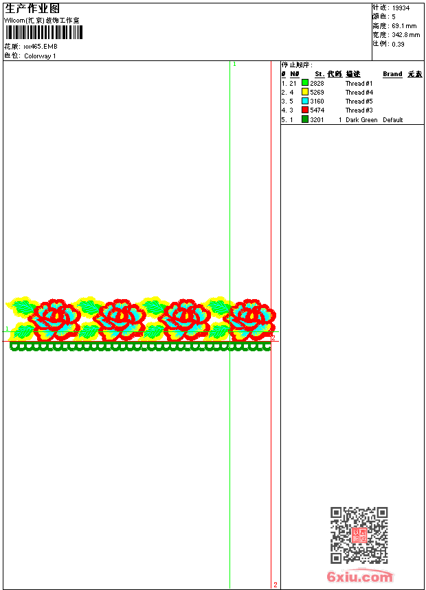 - emb花版参数: 大小:54.00 KB / 尺寸:343*69[毫米] / 针数:19934针 / 线色:5 / 格式:emb / 版本:9
