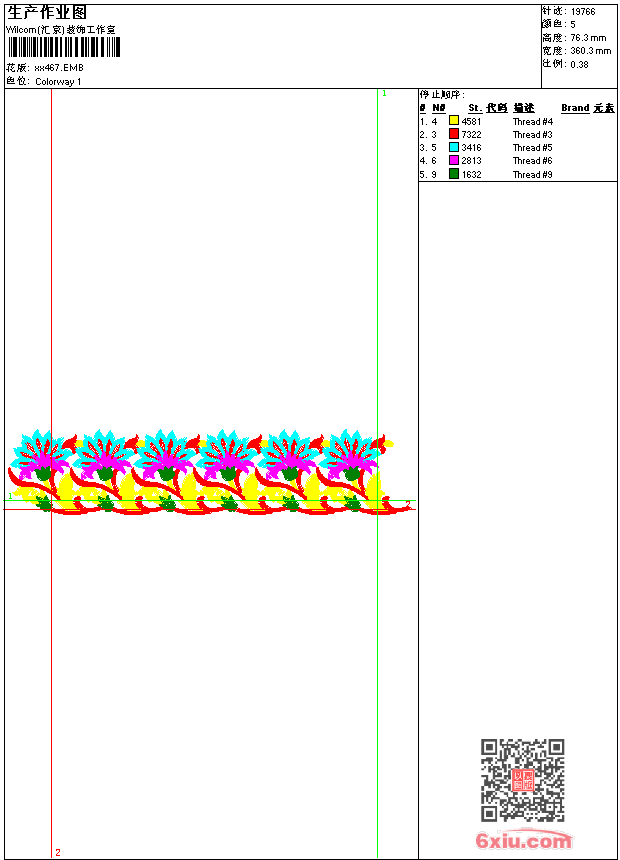 - emb花版参数: 大小:80.00 KB / 尺寸:360*76[毫米] / 针数:19766针 / 线色:5 / 格式:emb / 版本:9