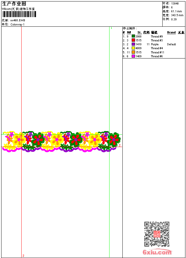 - emb花版参数: 大小:48.00 KB / 尺寸:344*61[毫米] / 针数:13848针 / 线色:6 / 格式:emb / 版本:9
