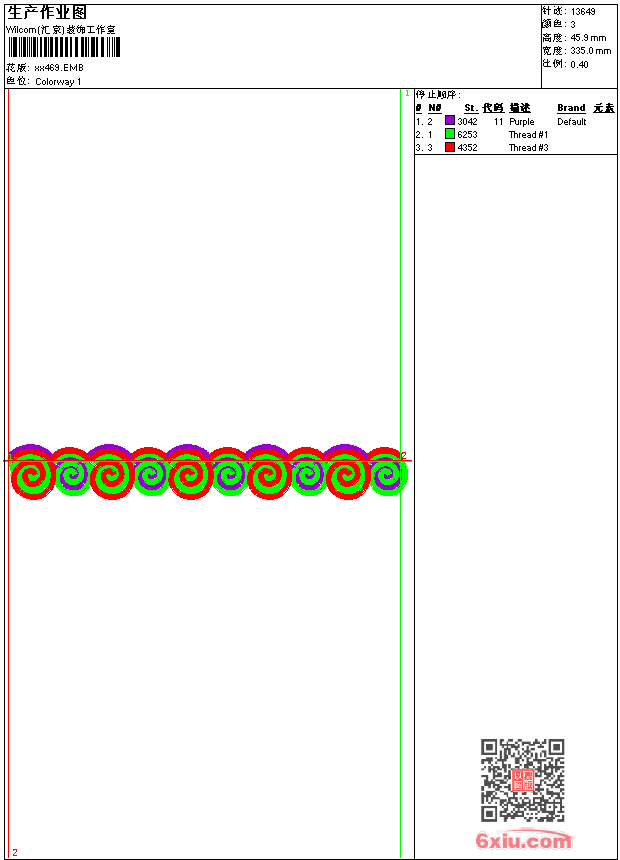 - emb花版参数: 大小:41.50 KB / 尺寸:335*46[毫米] / 针数:13649针 / 线色:3 / 格式:emb / 版本:9