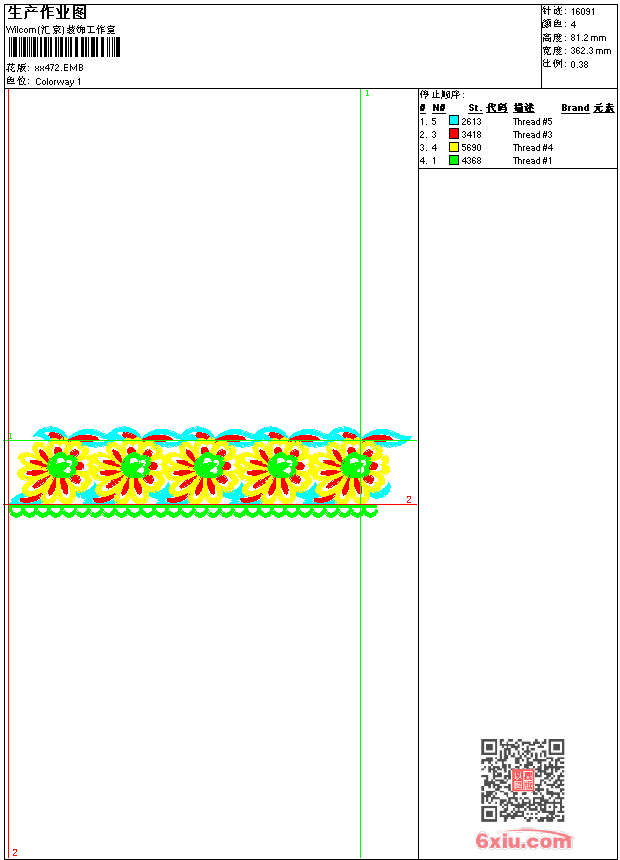 - emb花版参数: 大小:44.50 KB / 尺寸:362*81[毫米] / 针数:16091针 / 线色:4 / 格式:emb / 版本:9