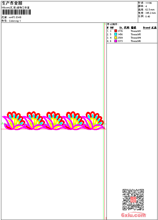 - emb花版参数: 大小:44.00 KB / 尺寸:345*63[毫米] / 针数:11196针 / 线色:4 / 格式:emb / 版本:9