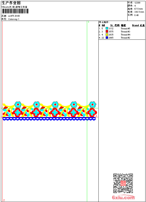- emb花版参数: 大小:50.50 KB / 尺寸:337*68[毫米] / 针数:12389针 / 线色:4 / 格式:emb / 版本:9