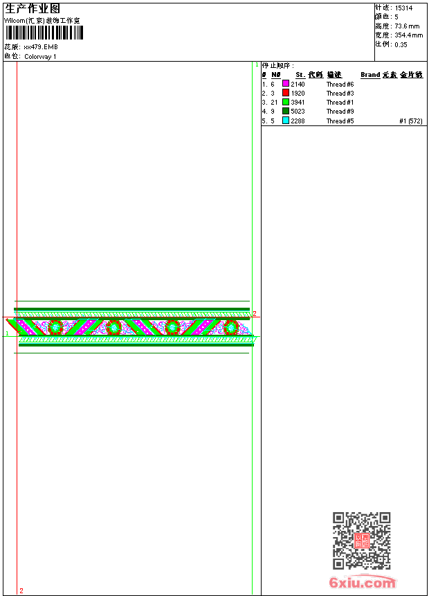 - emb花版参数: 大小:89.50 KB / 尺寸:354*74[毫米] / 针数:15314针 / 线色:5 / 格式:emb / 版本:9