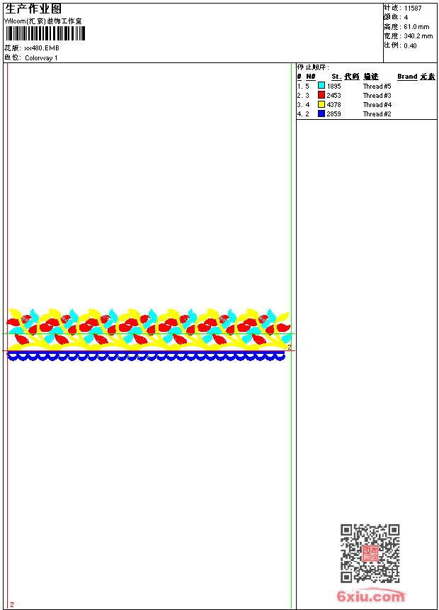- emb花版参数: 大小:35.50 KB / 尺寸:340*61[毫米] / 针数:11587针 / 线色:4 / 格式:emb / 版本:9