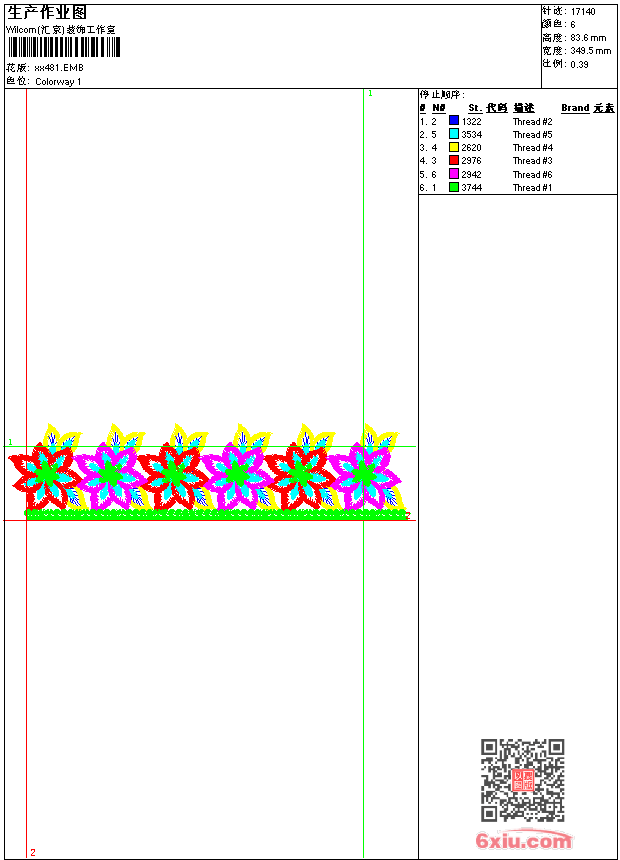 - emb花版参数: 大小:52.00 KB / 尺寸:349*84[毫米] / 针数:17140针 / 线色:6 / 格式:emb / 版本:9
