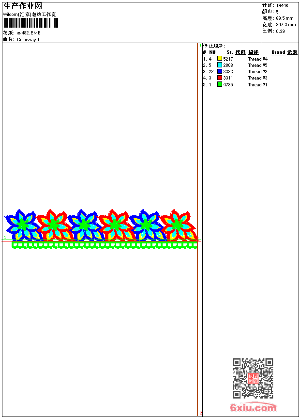 - emb花版参数: 大小:46.00 KB / 尺寸:347*70[毫米] / 针数:19446针 / 线色:5 / 格式:emb / 版本:9