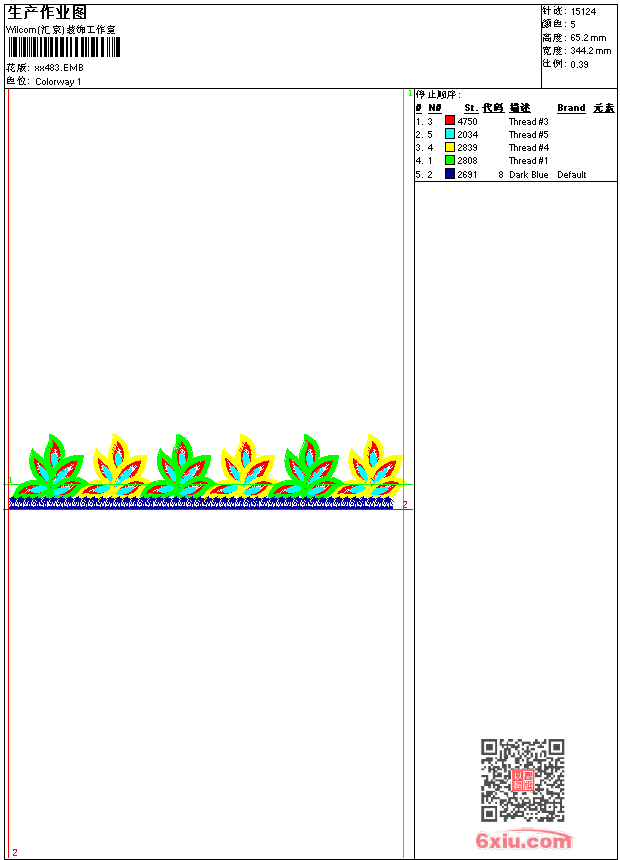 - emb花版参数: 大小:37.50 KB / 尺寸:344*65[毫米] / 针数:15124针 / 线色:5 / 格式:emb / 版本:9