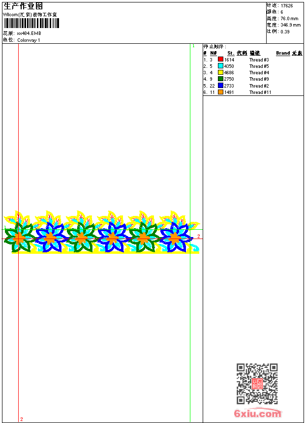 - emb花版参数: 大小:78.50 KB / 尺寸:347*76[毫米] / 针数:17626针 / 线色:6 / 格式:emb / 版本:9