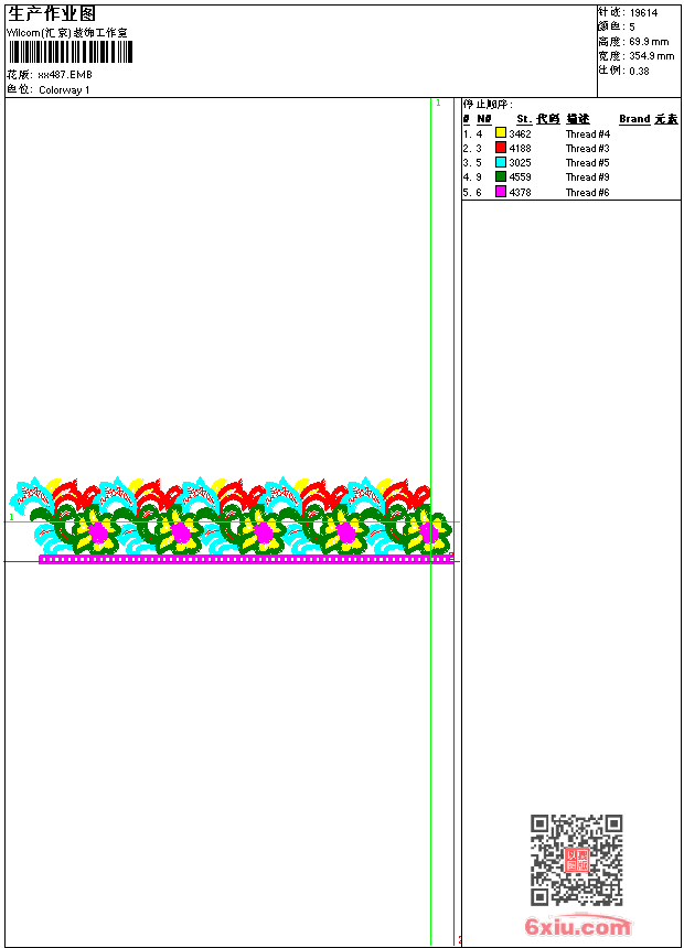 - emb花版参数: 大小:51.00 KB / 尺寸:355*70[毫米] / 针数:19614针 / 线色:5 / 格式:emb / 版本:9