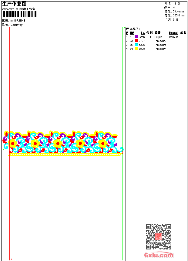 - emb花版参数: 大小:74.00 KB / 尺寸:355*74[毫米] / 针数:18108针 / 线色:4 / 格式:emb / 版本:9
