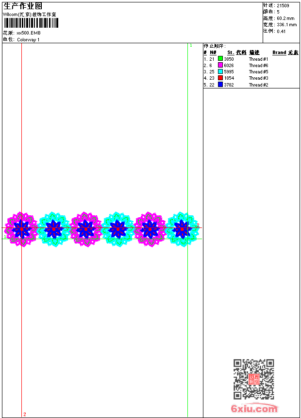 - emb花版参数: 大小:100.00 KB / 尺寸:336*60[毫米] / 针数:21509针 / 线色:5 / 格式:emb / 版本:9