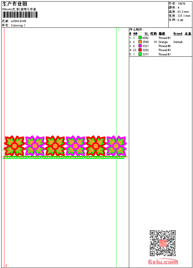 - emb花版参数: 大小:62.00 KB / 尺寸:337*63[毫米] / 针数:19676针 / 线色:4 / 格式:emb / 版本:9