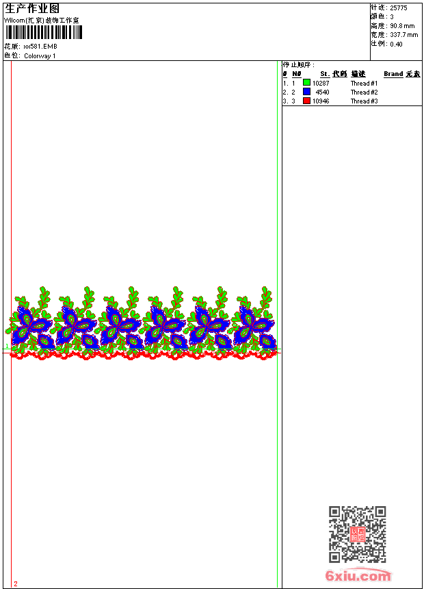 - emb花版参数: 大小:55.50 KB / 尺寸:338*91[毫米] / 针数:25775针 / 线色:3 / 格式:emb / 版本:9