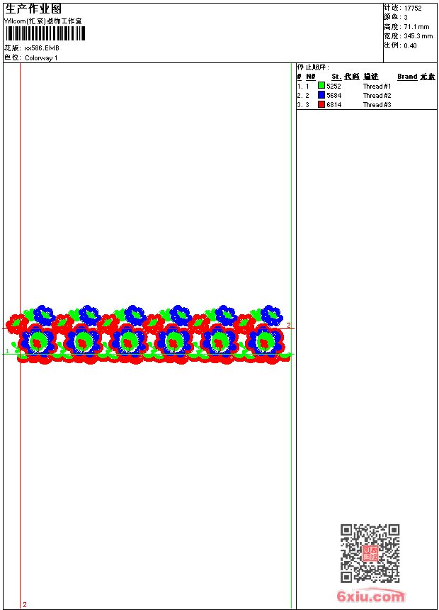 - emb花版参数: 大小:45.00 KB / 尺寸:345*71[毫米] / 针数:17752针 / 线色:3 / 格式:emb / 版本:9