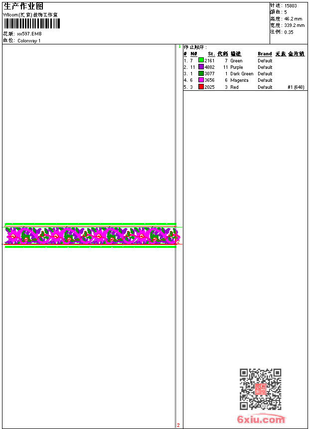 - emb花版参数: 大小:118.50 KB / 尺寸:339*46[毫米] / 针数:15803针 / 线色:5 / 格式:emb / 版本:9