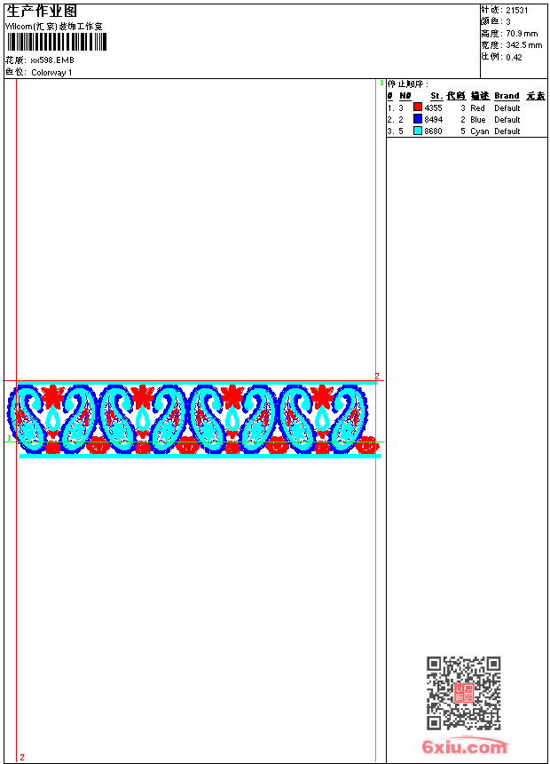 - emb花版参数: 大小:67.50 KB / 尺寸:343*71[毫米] / 针数:21531针 / 线色:3 / 格式:emb / 版本:9