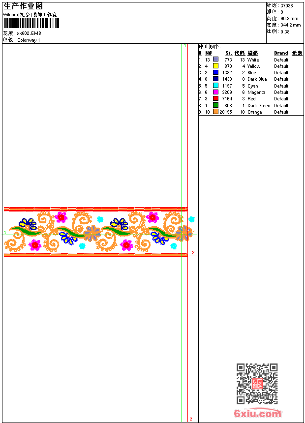 - emb花版参数: 大小:396.00 KB / 尺寸:344*90[毫米] / 针数:37038针 / 线色:9 / 格式:emb / 版本:9