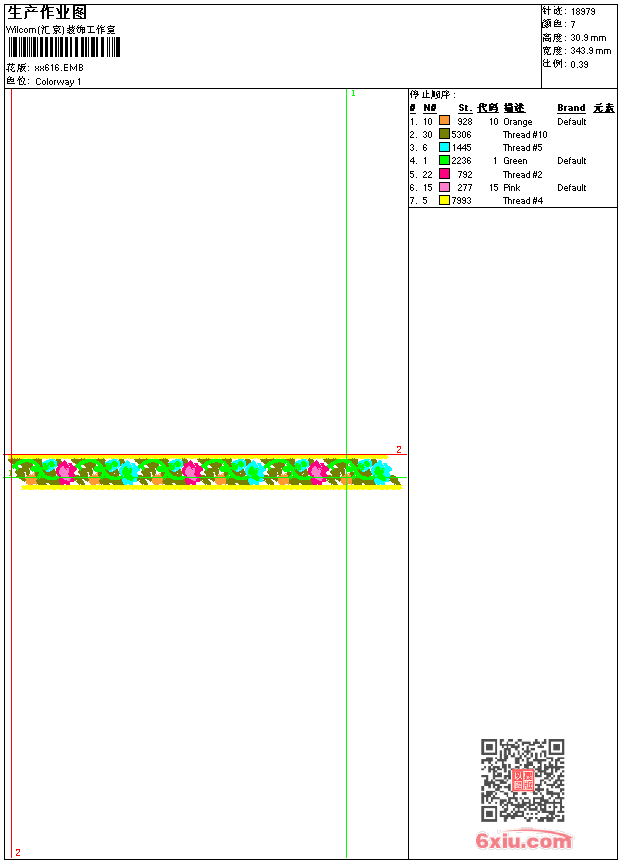 - emb花版参数: 大小:52.50 KB / 尺寸:344*31[毫米] / 针数:18979针 / 线色:7 / 格式:emb / 版本:9