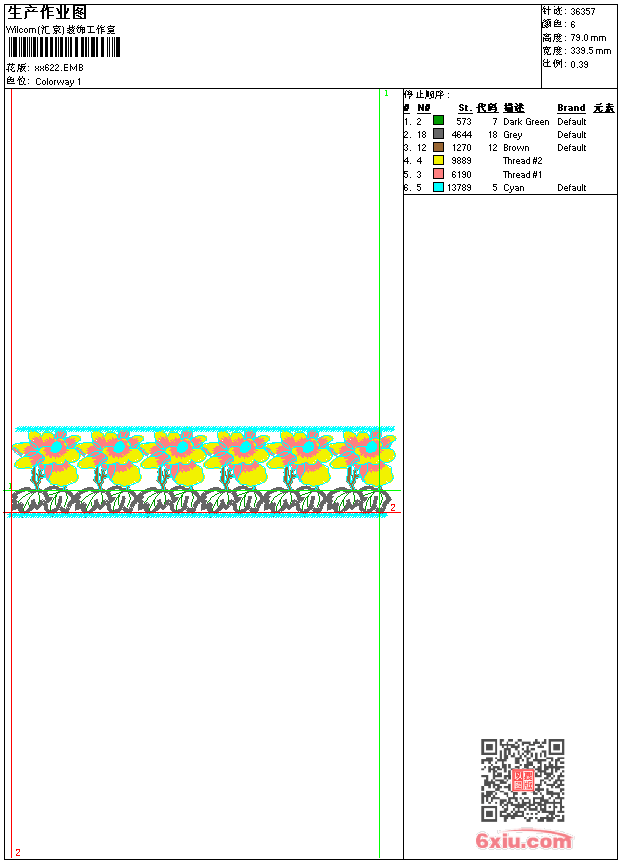 - emb花版参数: 大小:93.00 KB / 尺寸:339*79[毫米] / 针数:36357针 / 线色:6 / 格式:emb / 版本:9